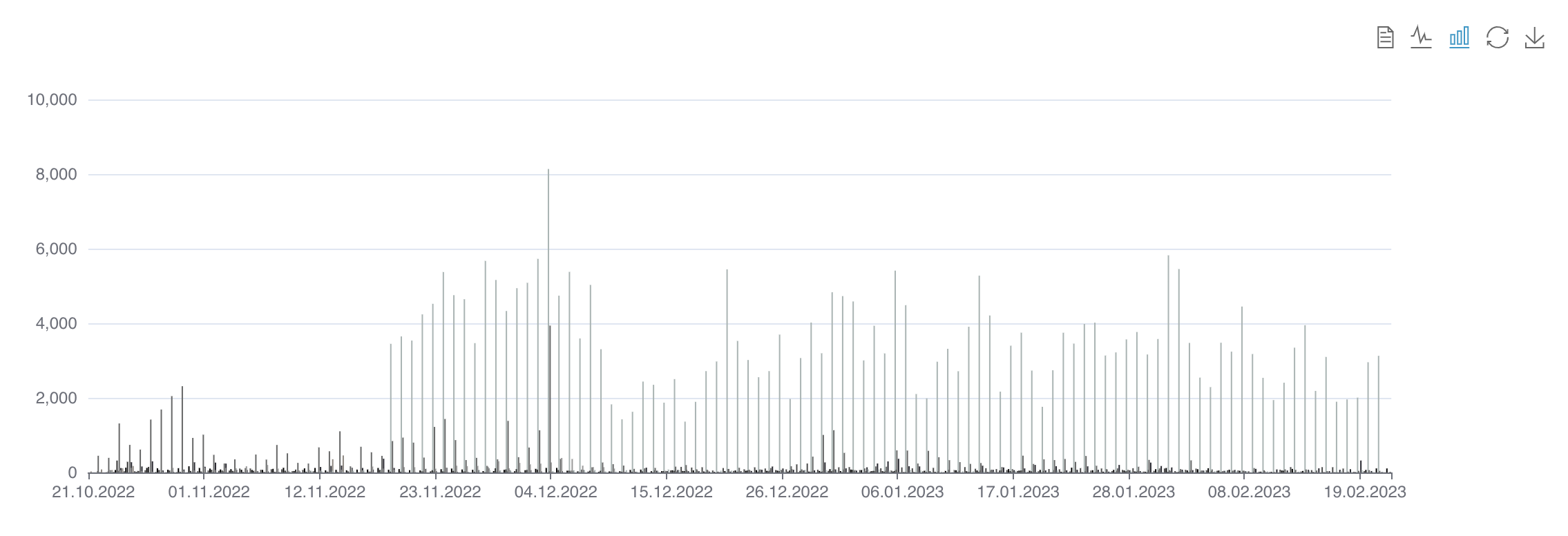 If you select the first category, "Unit Title," the information will be filtered by archival unit titles. This chart compares the number of messages in the selected archival units over a specific period of time.