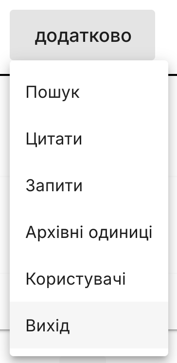 Для виходу з інструменту виберіть пункт "Вихід" у випадній вкладці "Додатково". Для повторного входу необхідно ввести свій логін і пароль, а також пройти двофакторну автентифікацію за допомогою додатка [Google Authenticator App](https://play.google.com/store/apps/details?id=com.google.android.apps.authenticator2) ([iOS](https://apps.apple.com/us/app/google-authenticator/id388497605)) або [Microsoft Authenticator App](https://play.google.com/store/apps/details?id=com.azure.authenticator) ([iOS](https://apps.apple.com/us/app/microsoft-authenticator/id983156458)).
